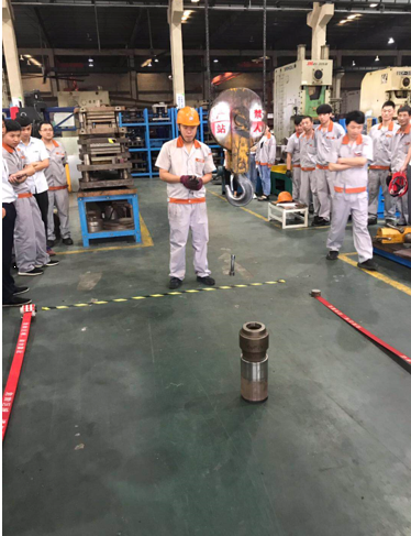 在比賽開始之前,工會主席呂曦紅、生產總監(jiān)蔡云峰、研發(fā)中心工程師李軍輝都到現(xiàn)場進行了相應的賽前道具準備、場地劃線。同時對比賽的安全操作、比賽流程做了詳細的講解,以確保員工安全比賽、了解賽事規(guī)則。本項目之所以叫“趣味行車”比賽,就是需要三人接力、按照用時最短的原則,將一個圓柱物體用行車吊裝進空心的圓柱體內。這對于平時操作行車的熟練程度、技藝都有較高的要求。
