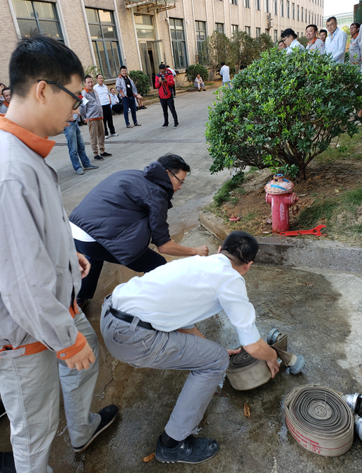 公司每年都會開展2次以上消防演練競賽活動,同時(shí)開展多次消防知識培訓(xùn),目的是讓員工提高員工安全消防意識,增強(qiáng)自我保護(hù)能力,學(xué)習(xí)和掌握消防安全知識及對突發(fā)火災(zāi)的應(yīng)變、逃生技能。今年公司于10月19日下午在廠區(qū)內(nèi)開展了消防演練競賽活動,活動包含單人手提4KG干粉50m滅火、5人2盤水帶連接競賽及火災(zāi)場所逃生演練,各部門員工踴躍響應(yīng)號召主動參加了此次演練。