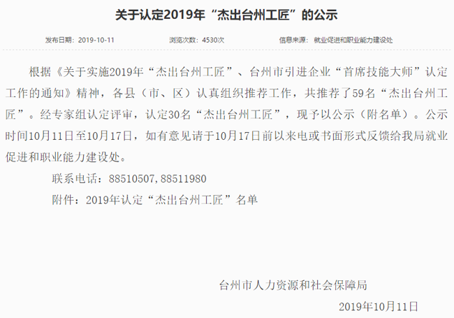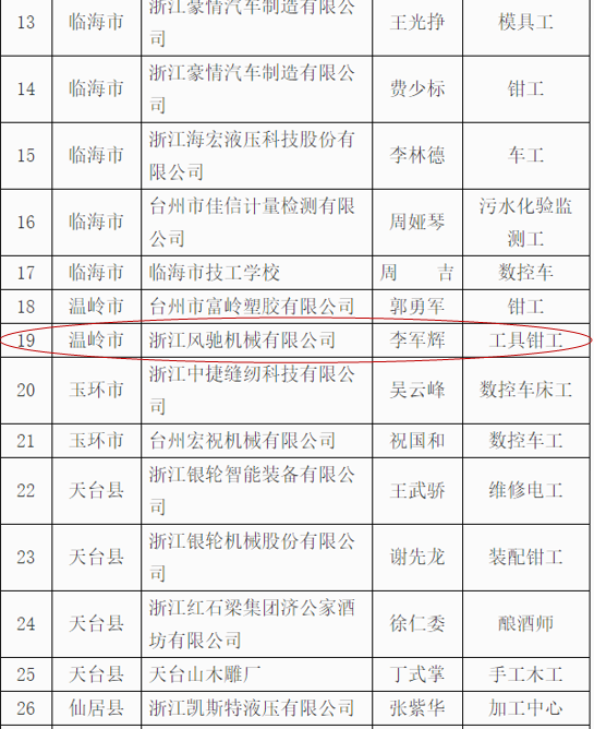 我司根據(jù)《關(guān)于實(shí)施2019年“杰出臺(tái)州工匠”、臺(tái)州市引進(jìn)企業(yè)“首席技能大師”認(rèn)定工作》的通知要求,通過公司推薦,資格初審,經(jīng)專家組認(rèn)定評(píng)審,我司研發(fā)中心工程師李軍輝成功順利入選被評(píng)選為“杰出臺(tái)州工匠”,并在網(wǎng)上予以公示,符合公司的價(jià)值觀“客戶為先、誠(chéng)信負(fù)責(zé)、團(tuán)隊(duì)合作、務(wù)實(shí)創(chuàng)新”精神。