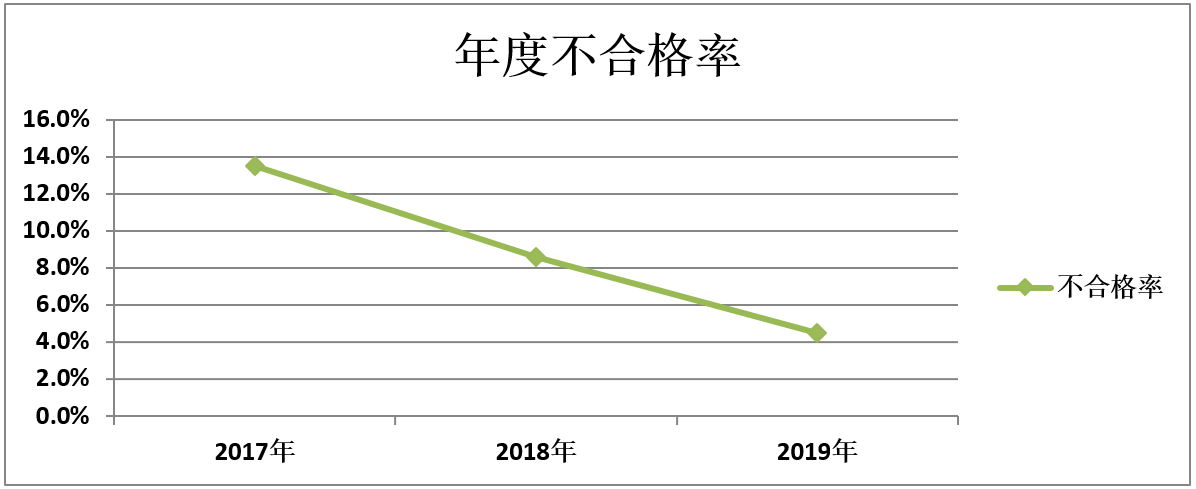 不斷修訂完善公司的《安全管理檢查考核辦法》和《公司現(xiàn)場管理制度》,每個月2次現(xiàn)場檢查考核,每季度召集車間主任以上參與現(xiàn)場檢查考核結(jié)果問題點審評,將考核成績和問題點公示在食堂大廳后面的看板上。組織相關(guān)部門對原2號車棚和西面臨時用地區(qū)域的臟亂差進行整治,重新規(guī)劃并劃分區(qū)域落實管理責(zé)任。賬票類檢查也落到實處,責(zé)任落到實處,處罰教育到位的原則,經(jīng)過不懈努力,生產(chǎn)現(xiàn)場6S管理考核不合率從2017年的13.5%、2018年的8.6%,直至降至2019年的4.5%。