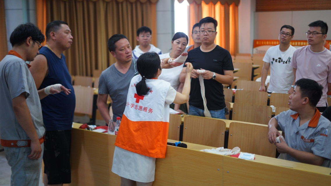 7月18~19日公司聯(lián)合溫嶺市紅十字會舉行了為期2天的現(xiàn)場急救救護知識培訓。在培訓過程中,紅十字會培訓講師為大家生動講解了救護的基本知識,包括創(chuàng)傷緊急包扎、骨折固定、心肺復蘇、排除氣道異物梗阻、人工呼吸等內容。