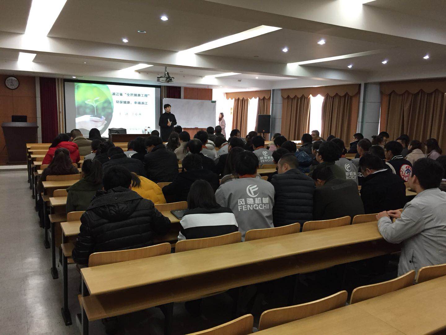 2018年1月17日浙江新生活環(huán)境保護(hù)宣教中心走進(jìn)風(fēng)馳進(jìn)行有關(guān)全民環(huán)保健康,共創(chuàng)美麗浙江的宣講活動(dòng),宣傳內(nèi)容為環(huán)保衛(wèi)生,垃圾分類,職工亞健康。