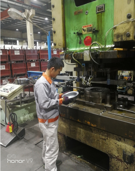 銳意創(chuàng)新,厲行節(jié)約,積極推動班組生產(chǎn)工作跨上新臺階。如六寸沖壓人工抬料改自動料吸裝置,提高生產(chǎn)效率 減少員工作業(yè)勞動強(qiáng)度。從原來未改進(jìn)前一天生產(chǎn)5214片 到改進(jìn)后一天生產(chǎn)5929片,效率提升8.7% 六寸滾圈由于對焊焊接好后流到滾圈工位因鋼圈較小生產(chǎn)速度快流下來滾圈來不及冷卻導(dǎo)致滾圈操作工取鋼圈時(shí)手燙傷氣泡。后經(jīng)考慮滾圈至整形工序再不減少日產(chǎn)量同時(shí)提出使用機(jī)器人代替人工操作,給公司節(jié)約人工成本一年4—5萬元左右。