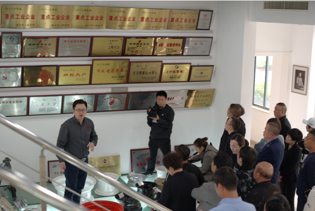 潘總裁在依序引領(lǐng)各體驗(yàn)者們參觀了產(chǎn)品展示區(qū)、計(jì)量室及公司辦公區(qū)域后,一起帶領(lǐng)生產(chǎn)總監(jiān)蔡云峰、總裁辦主任趙錦翔共同陪同各體驗(yàn)者參觀了我司的各生產(chǎn)區(qū)域,在參觀途中,由三位領(lǐng)導(dǎo)分批對(duì)各體驗(yàn)者們?cè)敿?xì)講解了我司的生產(chǎn)工藝流程、產(chǎn)品制造特性、機(jī)器換人、模具制造及我司的特殊工藝等等,同時(shí)媒體記者也在緊隨著全程拍攝報(bào)道,行業(yè)專家、人大代表及各品牌消費(fèi)者參觀后紛紛表示對(duì)我企“品質(zhì)標(biāo)”品牌的一致認(rèn)同。